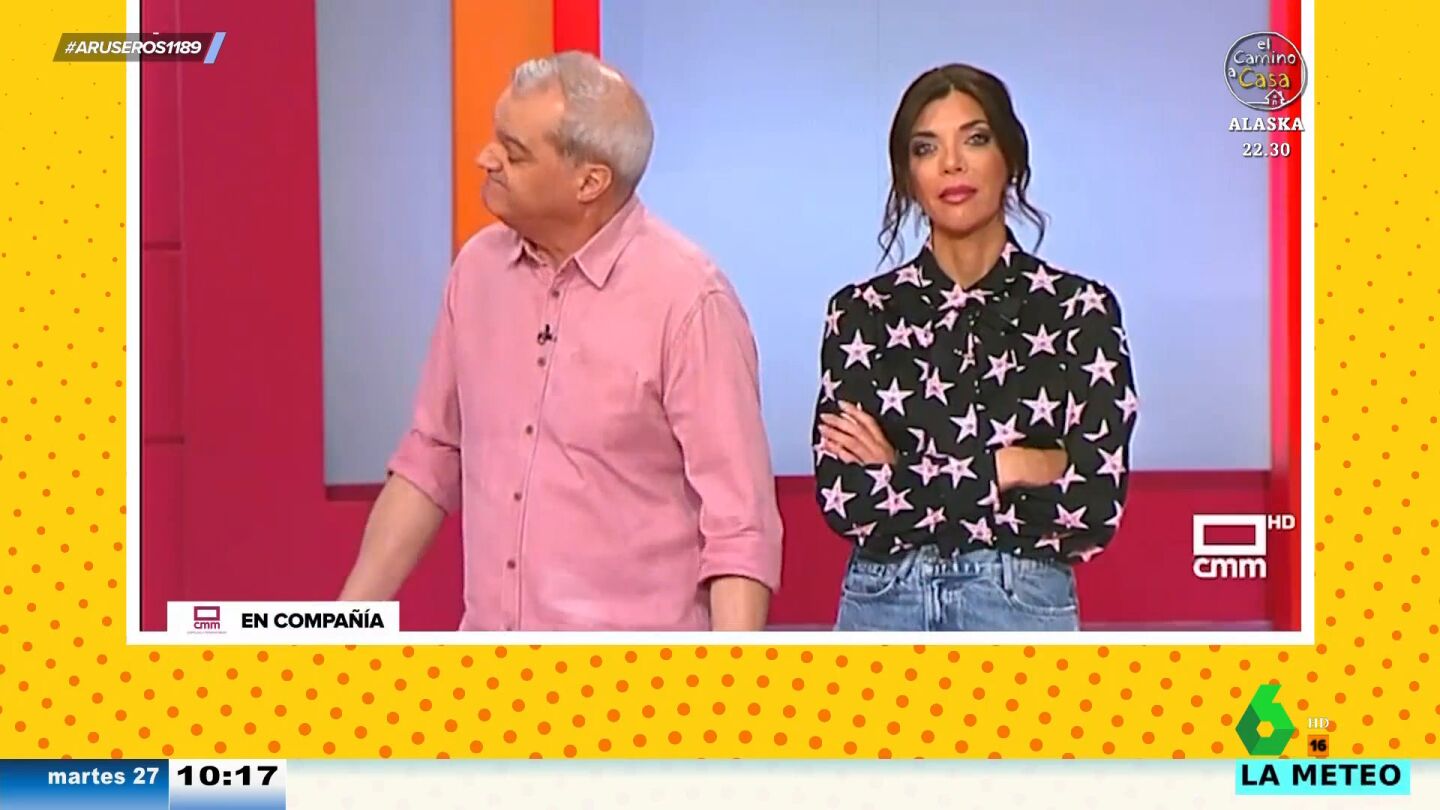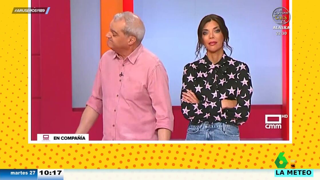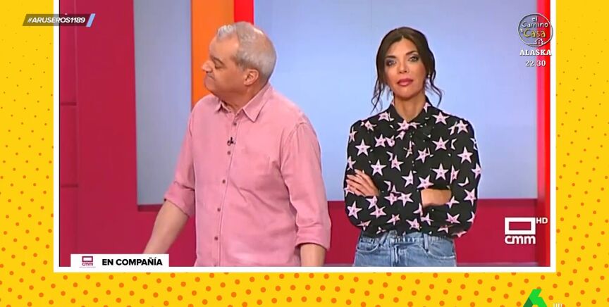 Alfonso Arús enseña en el plató de Aruser@s el incómodo momento que ha vivido Ramón García en su programa, 'En compañía', al llamar a una espectadora. "¿Estamos llamando a Santa Cruz de Mudela, en Ciudad Real?", pregunta el presentador, a lo que la mujer del teléfono le responde cortante: "Dígame".