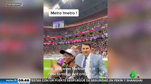 El equipo de Aruser@s ya lo vio venir. El operario del Mundial de Qatar que indica a los aficionados dónde está el metro ha arrasado en todo el mundo. Su éxito le ha llevado a actuar en los estadios de fútbol.