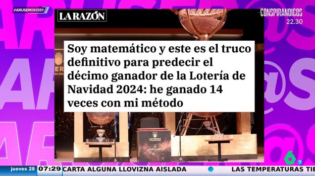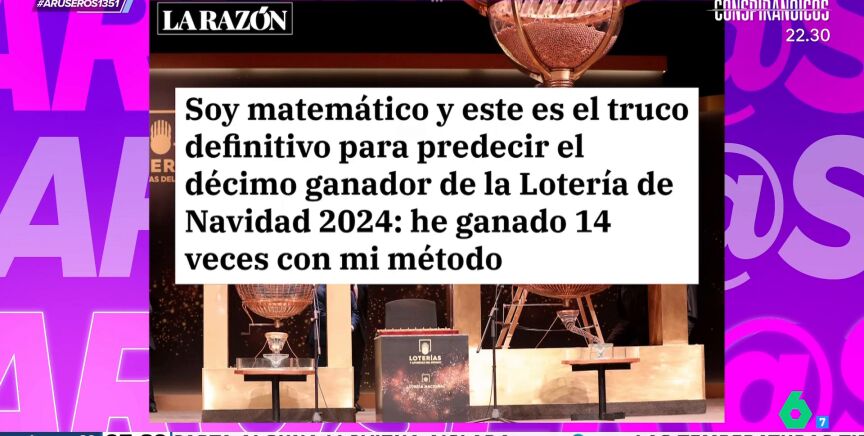A la hora de escoger los números para la Lotería de Navidad entran muchos factores en juego, desde los que eligen las terminaciones por fechas señaladas hasta los que indagan cuáles han sido los números que más han salido en diferentes años. Alfonso Arús, sin embargo, enseña en el plató de Aruser@s el sistema que ha utilizado un matemático que le ha permitido ganar la lotería de Navidad en 14 ocasiones.