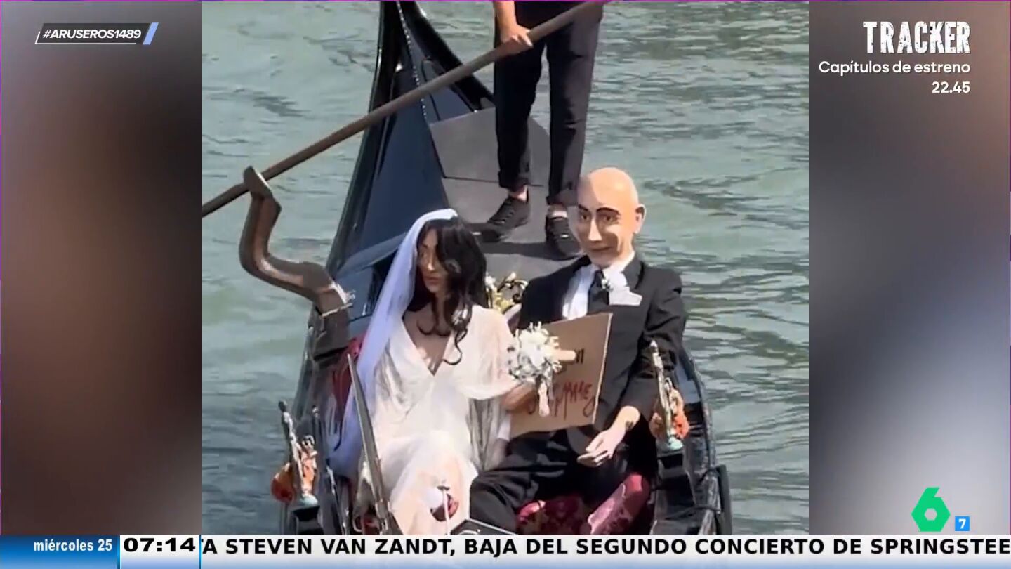 Además, Tatiana Arús enseña cómo dos figuras de Jeff Bezos y Lauren Sánchez han aparecido por un canal de Venecia. "No sé si es a modo de protesta porque las figuras son algo feas", afirma Tatiana Arús en el plató, donde Alfonso Arús destaca lo "feos" que son los muñecos: "No sé quién sale peor, porque Sánchez parece una bruja".