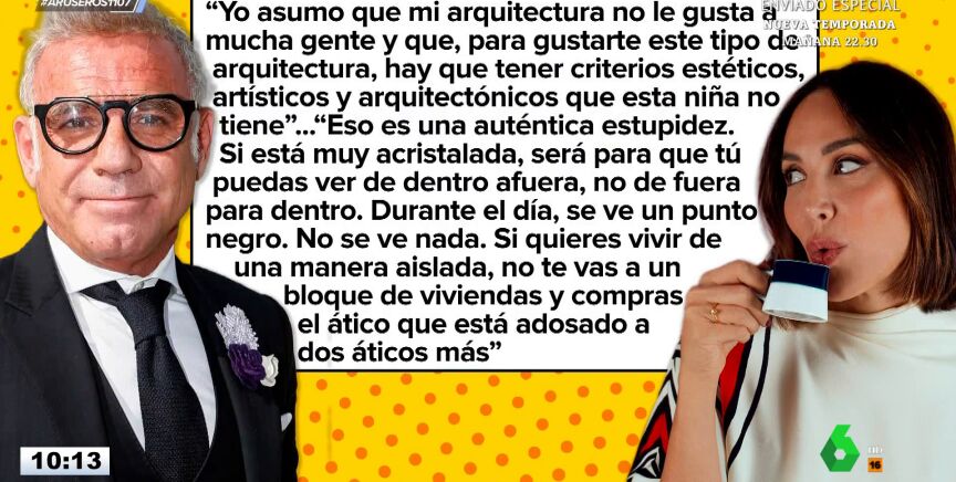 Y es que Tamara Falcó ha afirmado que su casa está hecha para que todo el mundo vea el interior. "Eso es una auténtica estupidez", ha resaltado Torres, que ha destacado que "si está muy acristalada será para que tú puedas ver de dentro a afuera o no de fuera para dentro". "Durante el día se ve un punto negro, no se ve nada", ha insistido el arquitecto, que ha lanzado otro duro zasca a Tamara Falcó: "Si quieres vivir de una manera aislada, no te vas a un bloque de viviendas y compras el ático que está adosado a dos áticos más".