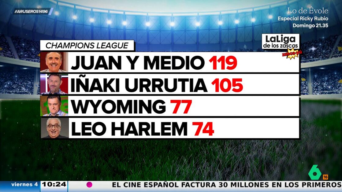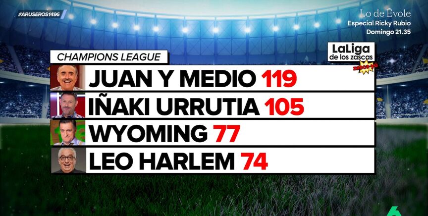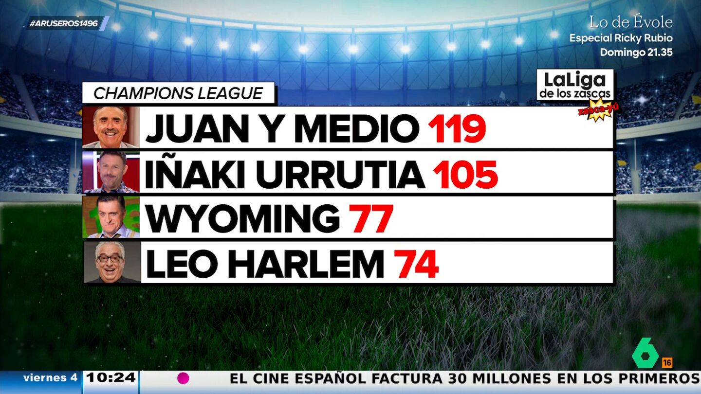 Juan y Medio vuelve a proclamarse como líder absoluto de la liga de los 'Zascas' que cada temporada se disputa en Aruser@s, el programa matinal de laSexta capitaneado por Alfonso Arús.