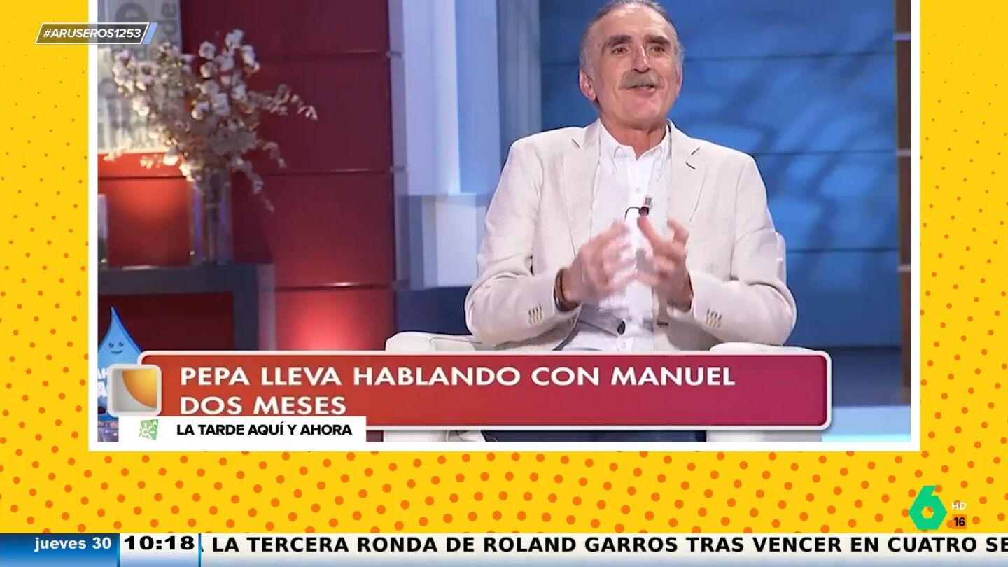 El presentador Juan y Medio le pregunta en su programa a una invitada que de qué habla con Manuel, la persona que lleva conociendo unos dos meses, ya que ella le ha confesado que él no es nada cariñosa con ella: "No, no es muy romántico, no", dice Pepa.
