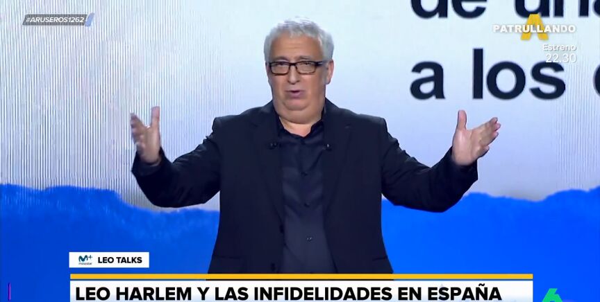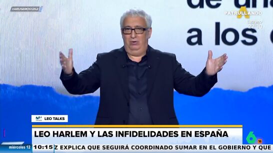 Leo Harlem habla en su monólogo 'Leo Talks' sobre las parejas y las infidelidades en España. El cómico leonés cuenta que según un estudio la primera gran discusión de uno pareja llega a los cinco años. "Lo que no te cuentan es que puede durar los 15 siguientes", añade el humorista al dato.
