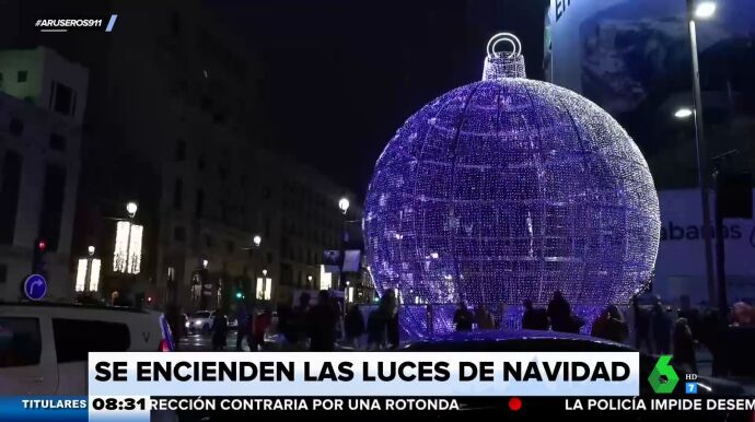 "Un espectacular alumbrado decora así el centro y las principales avenidas de Madrid", relata Llobet mientras muestra imágenes de la ciudad iluminada. "Algo más modesto ha sido el encendido en Barcelona. La puesta en marcha de la Navidad en la capital catalana también fue ayer por la tarde", comenta.