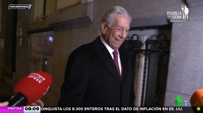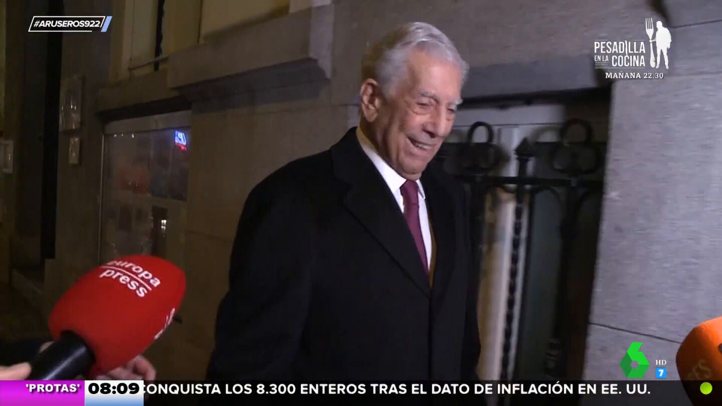 El escritor, premio Nobel de literatura, se embarca en una nueva aventura profesional y responde ante los medios de comunicación. La prensa no duda en preguntarle acerca de Tamara Falcó, hija de su pareja Isabel Preysler, y su exprometido, Íñigo Onieva.