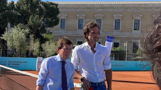 Martínez Almeida juega al tenis con Feliciano López (y no le da un pelotazo a nadie)