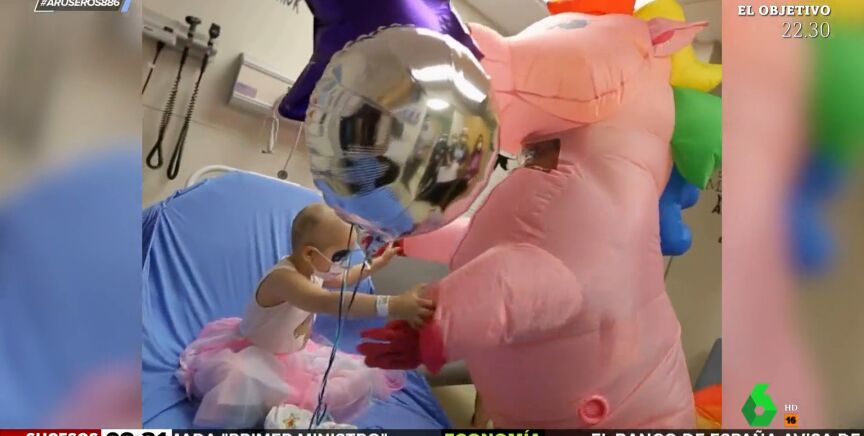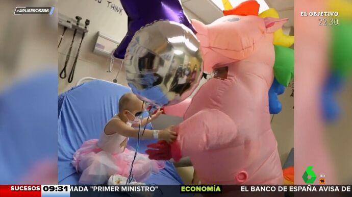"Creo que no es la primera vez que se disfraza de unicornio", apunta David Broc. "Es su disfraz favorito, además", cree Òscar Broc. "Se habrá pasado meses o años viviendo en el hospital, debe ser como de la familia para ellos y darle el alta tiene que ser muy emocionante", comenta María Moya.