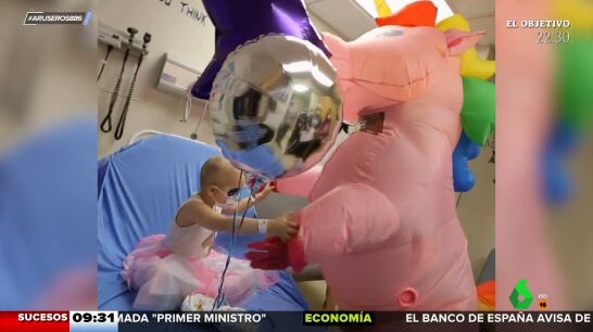 "No más quimio": un médico disfrazado de unicornio anuncia a su pequeña paciente que ha superado el cáncer