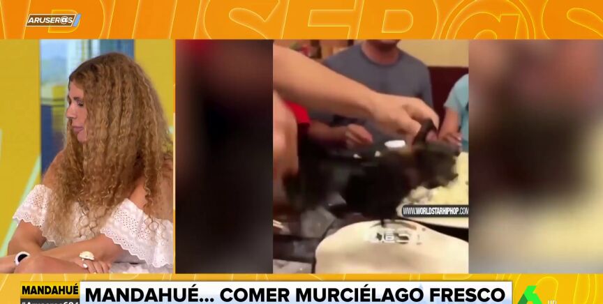 En algunos países es frecuente comer platos hechos a base de murciélago. Es el caso del vídeo que ha mostrado Alfonso Arús en Aruser@s, en el que aparecen varias personas disfrutando de un plato de "murciélago fresco".
