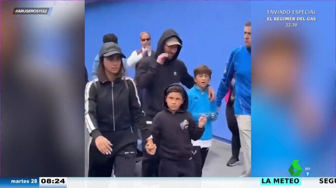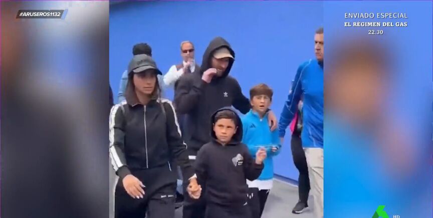 Tatiana Arús enseña en el plató de Aruser@s las imágenes de Leo Messi junto a su familia en el Disney de Orlando, Estados Unidos. Aunque tanto el futbolista como su mujer, Antonela Rocuzzo, intentaron pasar desapercibidos con ropa oscura y gorra, el astro argentino desató la locura en el parque de atracciones.