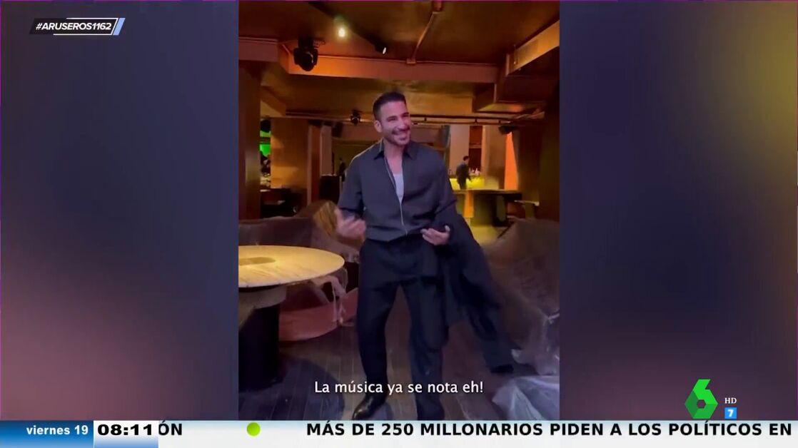 "La música ya se nota", destaca Miguel Ángel Silvestre al enseñar en este vídeo cómo es por dentro su nuevo restaurante con famosos como Álex González, al que saluda con un efusivo abrazo.