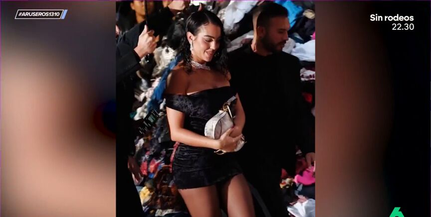 Tatiana Arús enseña en el plató de Aruser@s los momentos más destacados de la Semana de la Moda de París. Por ejemplo, el look viral de Gigi Hadid, que sorprendió a los presentes al aparecer en el escenario con un vestido amarillo de cinta. "Decían que no era el vestido más cómodo del mundo", destaca Tatiana Arús, que también enseña en el vídeo principal de esta noticia el atrevido minivestido azul marino de Georgina Rodríguez: "Se la ha visto compartiendo confidencias con famosos como Bad Gyal o J Balvin".
