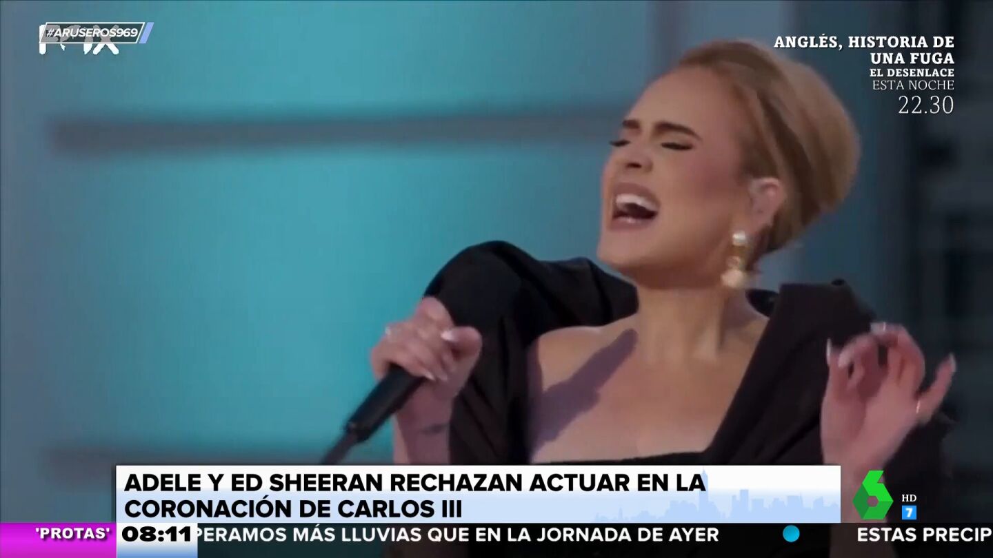 Ni Ed Sheeran ni Adele actuarán en la coronación de Carlos III de Inglaterra. Ambos afirman estar "demasiado ocupados" para acudir al evento y por este motivo han declinado la oferta, aunque la cantante no tiene ningún concierto previsto a partir del 25 de marzo, informa Tatiana Arús en Aruser@s.