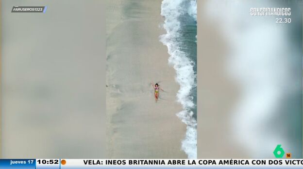 Las fotos y vídeos perfectos que se ven en redes socialesno salen siempre en el primer intento y su 'making of' suele dejar imágenes graciosas como esta. Una mujer está posando tumbada en la orilla de una playa de Filipinas mientras un dron le graba. Todo parece ir bien, la chica está posando cuando aparece una ola que arruina la toma.