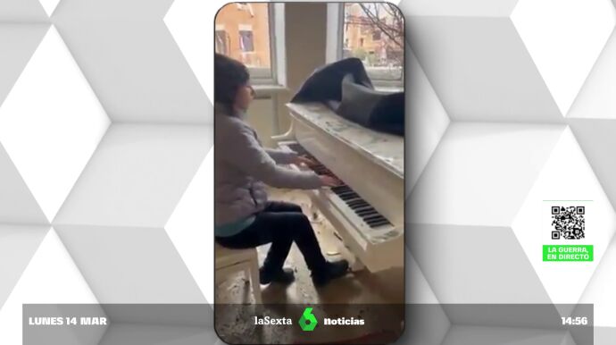Hoy en Aruser@s, Marc Llobet ha mostrado un breve instante de belleza en la catástrofe. En el vídeo que acompaña a la noticia, una mujer decide despedirse de su casa en Kiev tocando el piano justo antes de tener que marcharse de su hogar que ha sido parcialmente destruido por los ataques rusos.