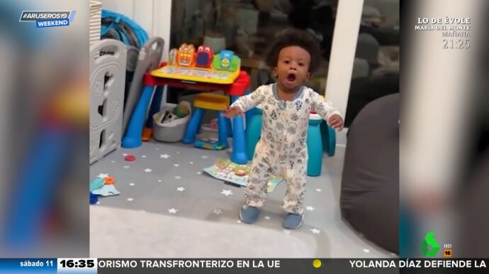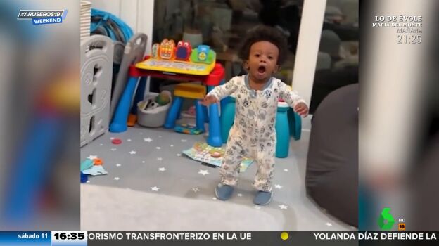 En el emocionante vídeo de Aruser@s Weekend que acompaña a esta noticia, podemos ver el precioso momento en el que un niño da sus primeros pasos. Lo especial es que, al darse cuenta, se lleva una sorpresa enorme y grita como si fuera Cristiano Ronaldo: ¡"Siiuuuuuu!".