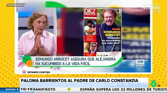 "Bigote Arrocet, al menos, nos guste o no, tiene un pasado de artista", comienza diciendo Paloma Barrientos en el programa 'Estando Contigo' de Castilla-La Mancha TV. La periodista analiza a los Costanziay comenta que, "la familia es muy grande, pero la familia directa de Carlo Costanzia es un horror, no la querría para mí". Paloma Barrientos también carga contra el padre de Carlo Costanzia."Es un señor que es un soberbio y un prepotente", sentencia.