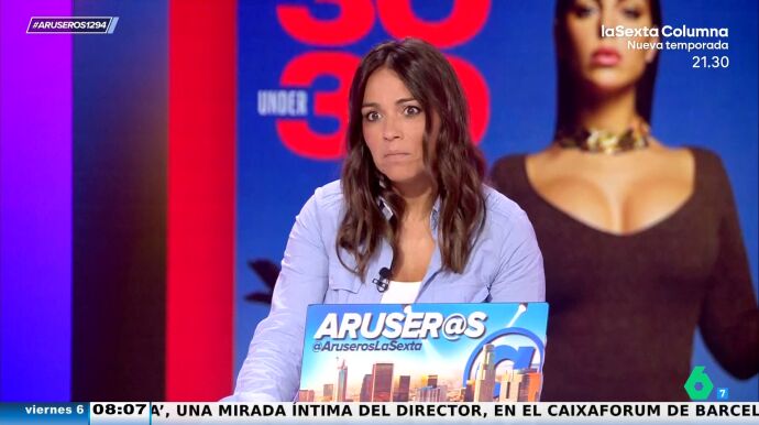 Por otro lado, Alfonso Arús destaca la portada de la revista Forbes en la que aparece Georgina Rodríguez por su éxito. Se trata de una lista, especial española, en la que aparecen nombres de personas relevantes de España menores de 30 años como Carlos Alcaraz, Quevedo o la propia modelo. Tras ver la portada, el presentador de Aruser@s abre debate en el plató: "¿Parece que esta chica es menor de 30 años?". "Está tan retocada que parece que es mayor", afirma Rocío Cano mientras que Patricia Benítez destaca que "es una pena tener que retocarse tanto antes de los 30".