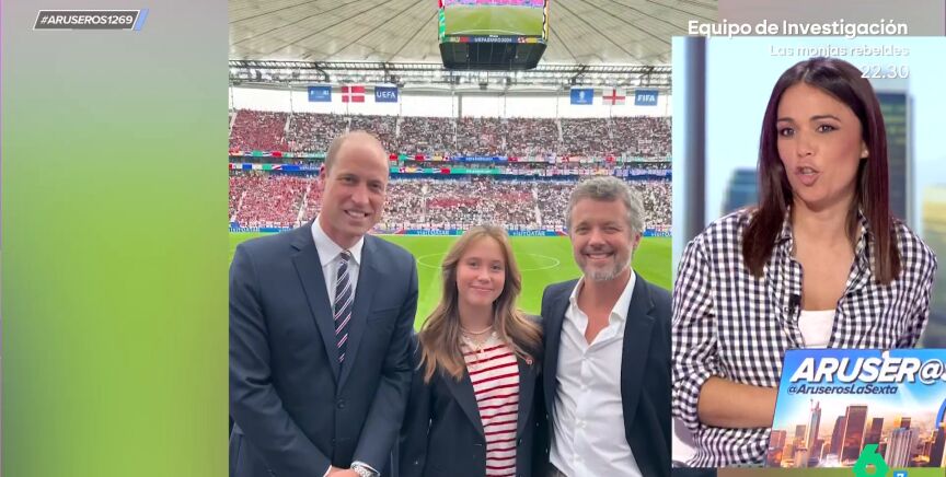 Alfonso Arús enseña en el vídeo principal de esta noticia las imágenes del príncipe Guillermo y el rey Federico durante un partido de la Eurocopa. Y es que ambos acudieron al partido que disputaban Inglaterra y Dinamarca. "Vemos cómo hay mucha deportividad y ambos se saludan y disfrutan del partido en común en el estadio", explica Tatiana Arús, que destaca que también acudió la hija del rey de Dinamarca.