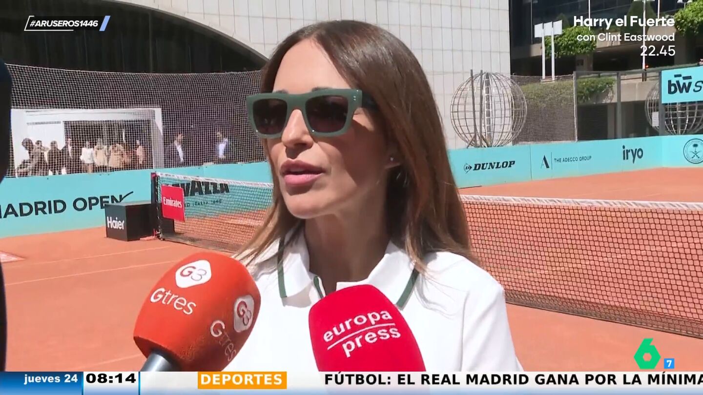 Paula Echevarría ha acudido a un evento vestida de tenista con un inesperado anillo que ha llamado la atención de los reporteros, quienes siempre le preguntan por una futura boda con Miguel Torres. "¿El solitario?, me lo he regalado yo", asegura la actriz.