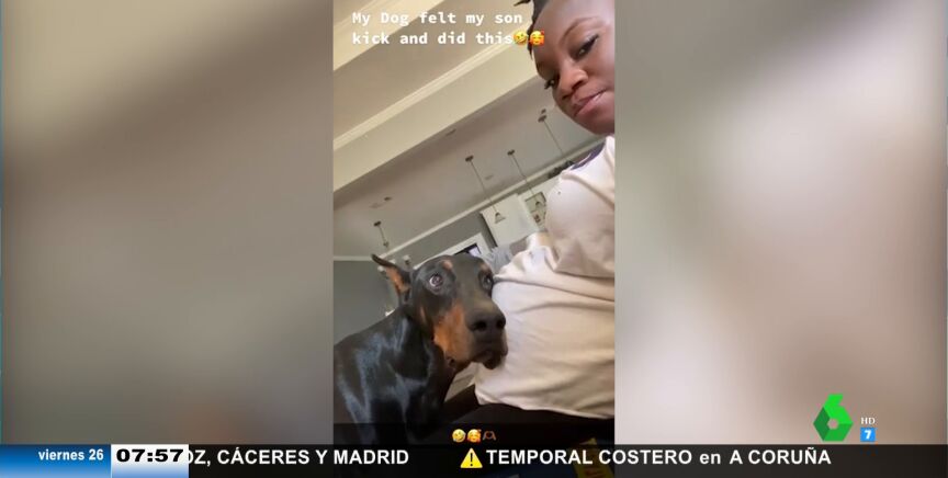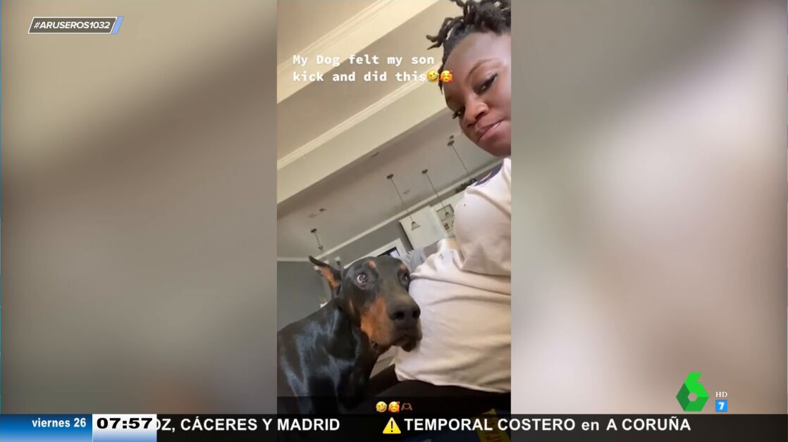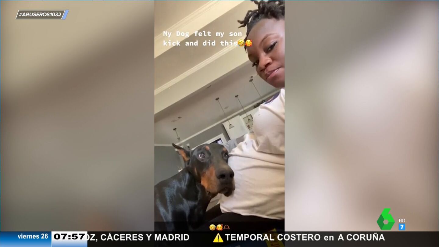 Quien tiene la suerte de compartir su vida y su casa con un animal sabe que puede llegar a ser una experiencia maravillosa. Una muestra de estos mágicos momentos la vemos en este vídeo viral emitido en Aruser@s, en el que presenciamos cómo un perro reposa su cabeza sobre la tripa de su dueña, que está embarazada.
