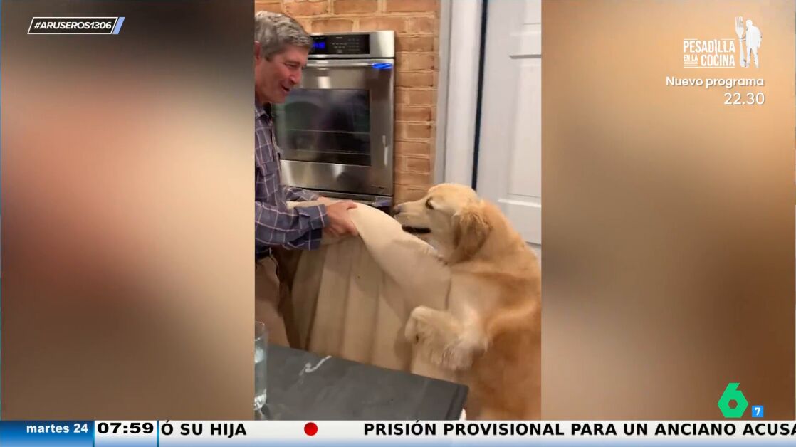 Alfonso Arús presenta en el vídeo principal de esta noticia un viral en el que un perro ayuda a su dueño a mover la cama en la duerme. En las imágenes se puede ver a la mascota andando sobre dos patas y marcha atrás, mientras transporta con las patas delantera su cama.