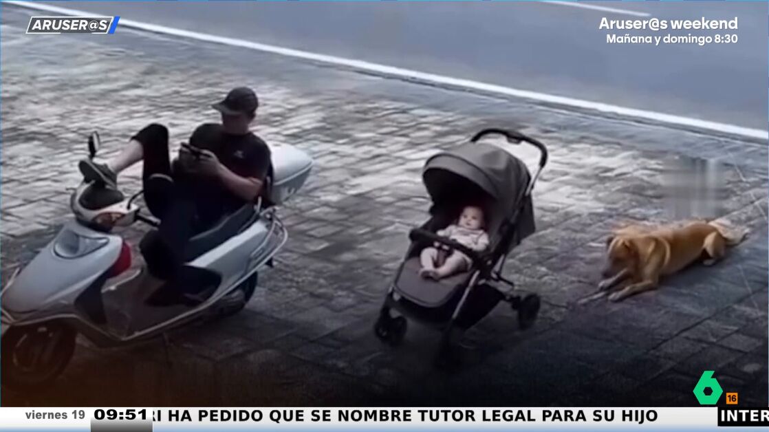 Alfonso Arús ha mostrado en los 'Super Olé' un impactante y emotivo vídeo que se ha vuelto viral: el heroico momento en el que un perro ha salvado la vida a un bebé tras avanzar su cochecito, sin frenos, por una pequeña pendiente hacia la carretera.