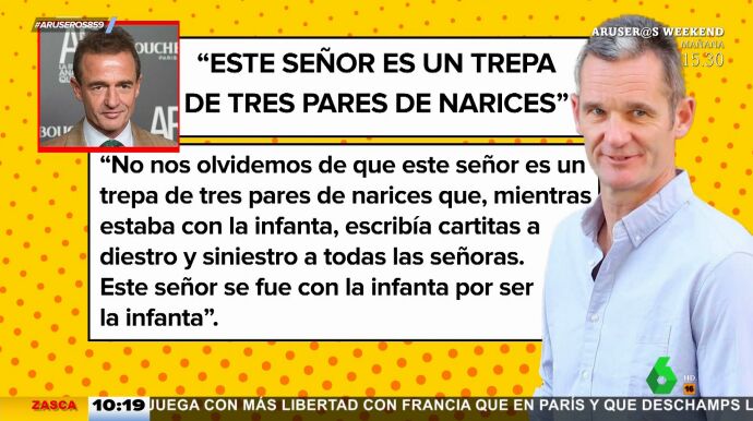 "Este señor es un trepa de tres pares de narices". Así se refiere Alessandro Lecquio a Iñaki Urdangarín en unas declaraciones en las que además afirma que el ex de la infanta "escribía cartitas a diestro y siniestro a todas las señoras" cuando aún era pareja de Cristina de Borbón.