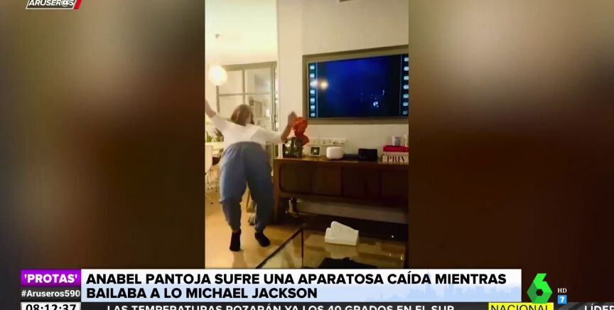 En este vídeo de Aruser@s puedes ver la aparatosa caída que sufrió Anabel Pantoja mientras bailaba en su casa.