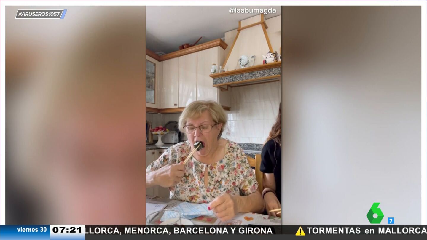 La reacción de una abuela gallega cuando su nieta la obliga a comer sushi: "Que me perdone la cultura china"