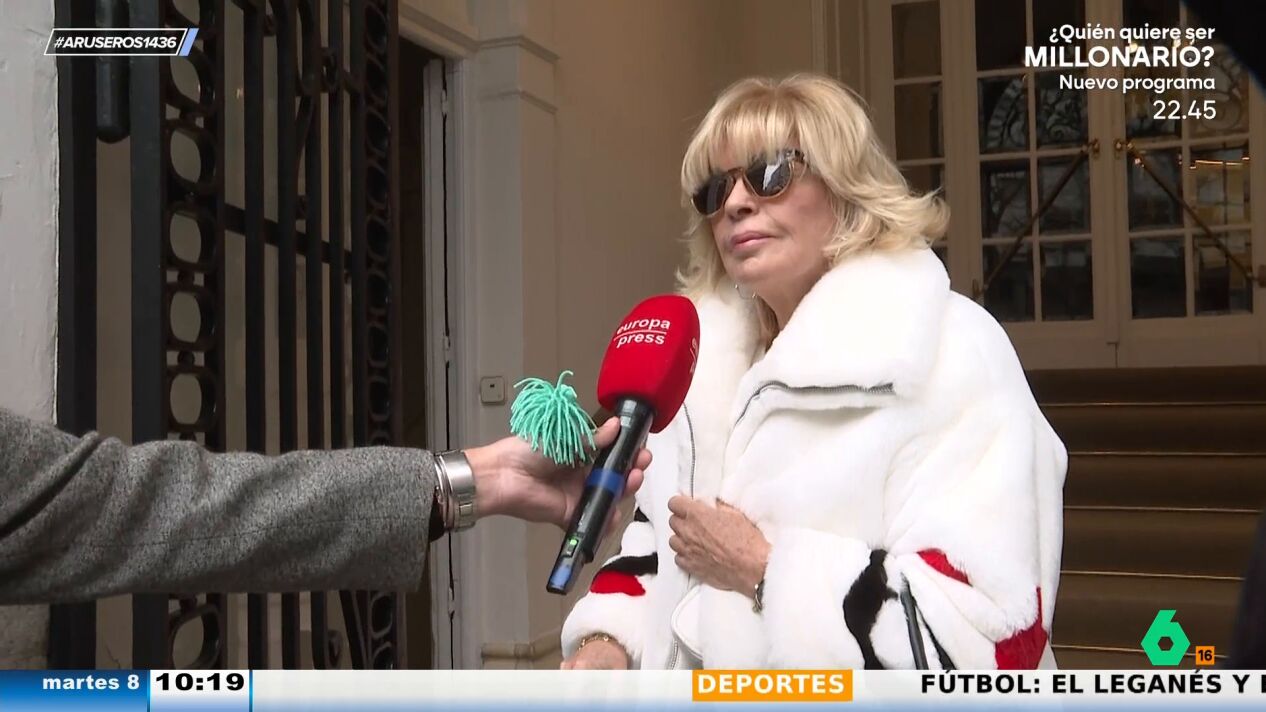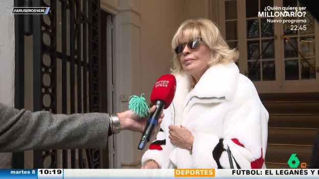 Bárbara Rey se pronuncia acerca de la decisión del rey Juan Carlos de denunciar a Miguel Ángel Revilla y responde a quienes se preguntan por qué el emérito no la ha demandado también a ella. "Preguntádselo a él", contesta brevemente a esta cuestión, como podemos ver en este vídeo emitido en Aruser@s.
