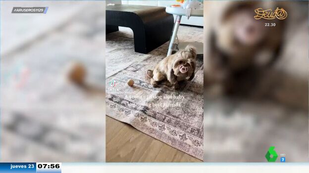 Alfonso Arús no acaba de entender por qué este bebé no se ha puesto de los nervios ante este hecho, como el resto de los niños del mundo (quizá habla por experiencia propia, después de lo vivido con sus cuatro hijos). "Si lo roba el perro, parece que el mal es menor". Alba Sánchez cree que a lo mejor puede ser una buena manera para que los pequeños abandonen el chupete. "Ahora, un ratito para el perro".