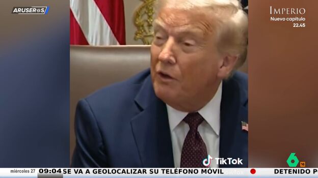 Alfonso Arús muestra en el vídeo principal de esta noticia la reacción de Donald Trump al compromiso de la cantante y el jugador de fútbol americano. "Les deseo mucha suerte", ha destacado el presidente de Estados Unidos, que ha afirmado que "él es un gran jugador y un gran tipo" mientras que ella cree "que es una persona fantástica".