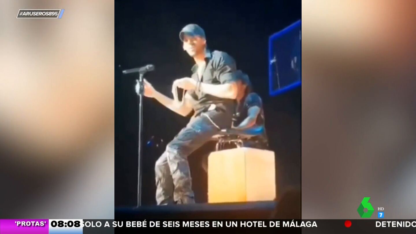Pero el show contó con un momento inesperado. Una fan lanzó un tanga al escenario y Enrique Iglesias recibió encantado tan curioso regalo. "Empieza a recoger este tanguita que le han entregado y lejos de guardárselo, se recrea, lo huele, lo soba... y finalmente se lo guarda", informa Tatiana Arús.