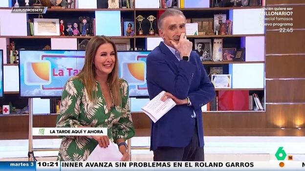 Juan y Medio vuelve a ser uno de los protagonistas de los 'zascas' de Aruser@s por su divertida reacción al saber que alguien del público no se encuentra de cuerpo presente en el plató.