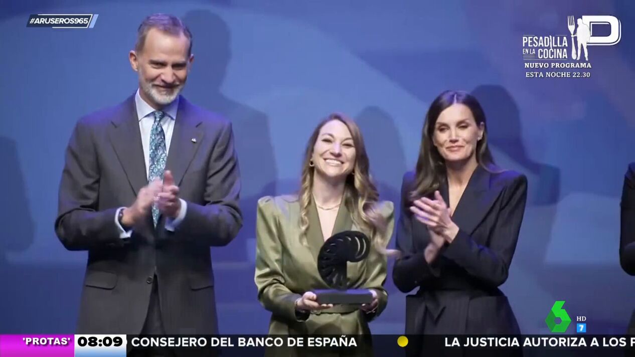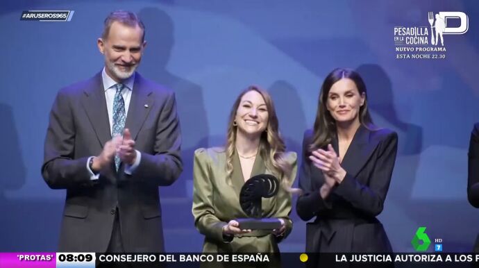 Doña Letizia, que se encontraba sobre el escenario para hacer entrega de los galardones, se dirigió al conductor del evento. "¿Estás bien?", le preguntó. "Estoy bien, pero se me deslizan (las tarjetas)", respondió el presentador.
