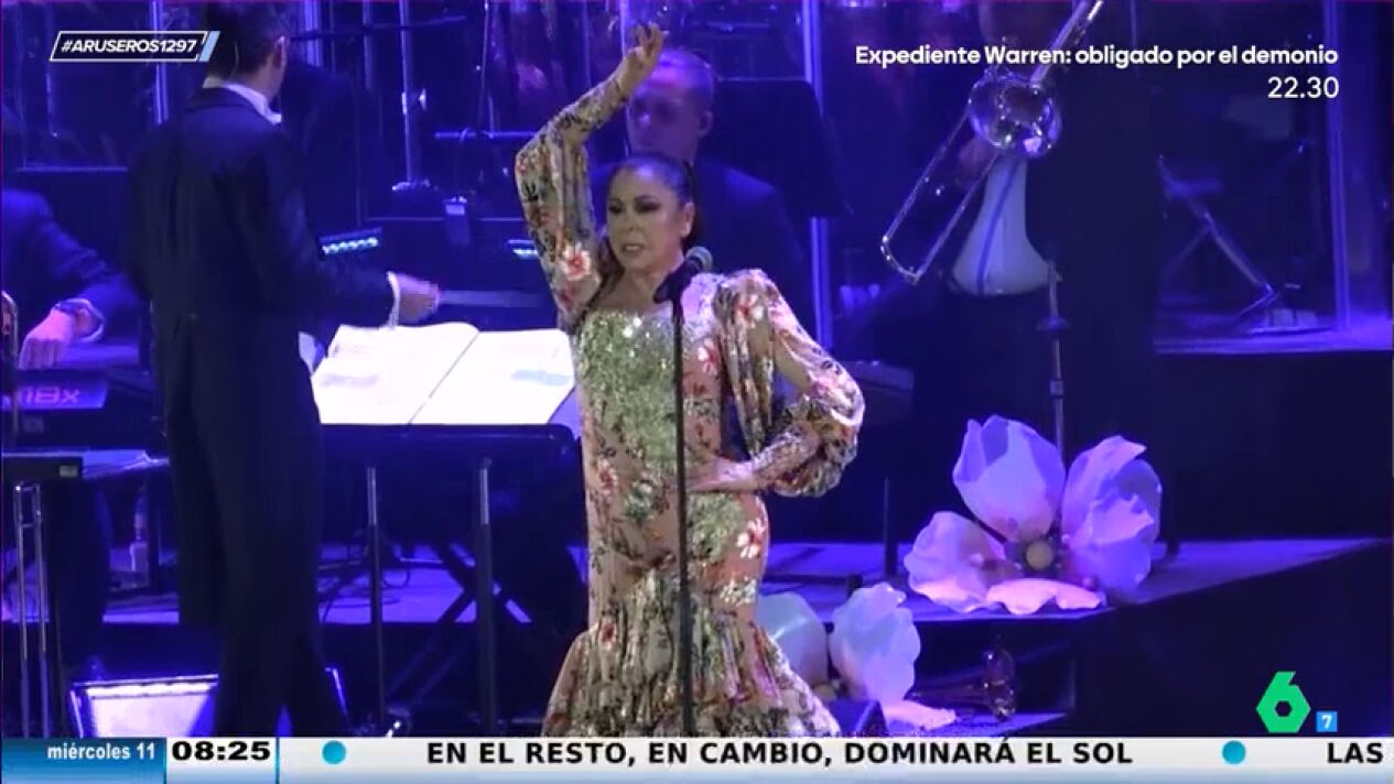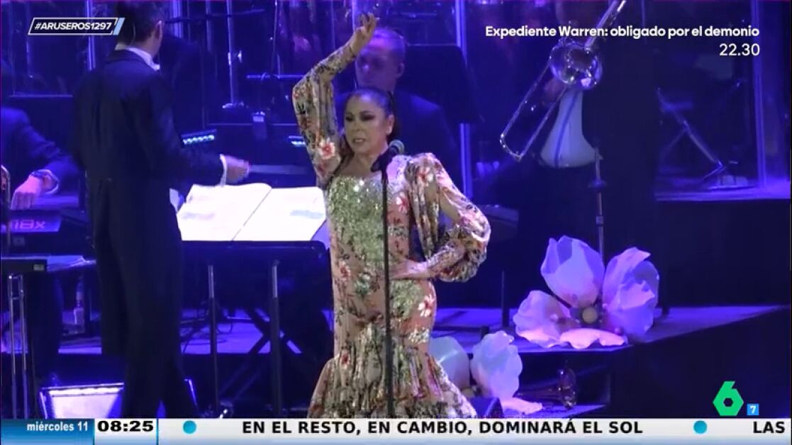 Isabel Pantoja continúa con "su estrategia al más puro estilo Karol G" o Madonna, de subir al escenario de sus conciertos a famosos. Esta vez, la tonadillera ha invitado a la cantante Ana Guerra a cantar con ella en el próximo concierto que celebrará el 21 de septiembre en Tenerife. "Además, dicen que ha recibido regalos valorados en un montón de ceros", destaca Alfonso Arús en el plató de Aruser@s, donde explica que uno de ellos habría sido un bolso Hermès auténtico.