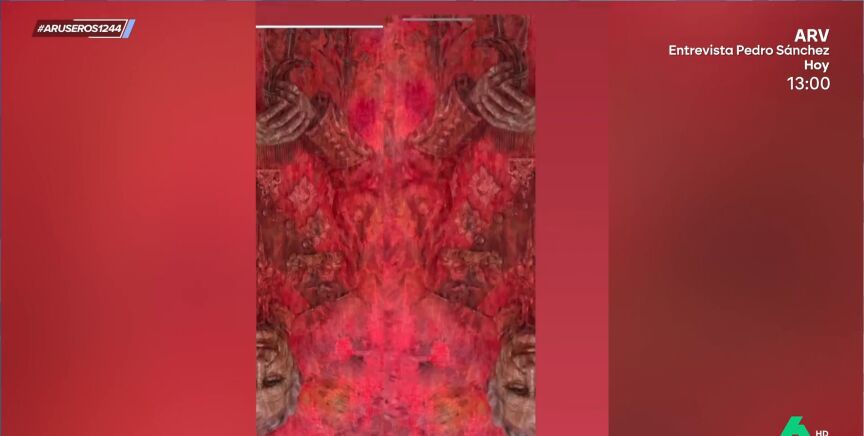 Prosiguen las especulaciones sobre el llamativo cuadro de Carlos III . Después de que los internautas afirmasen que en el fondo rojo se escondía la cabeza de un cocker spaniel , ahora los internautas dicen otra cosa. "Han encontrado otra figura oculta, más inquietante incluso que el perro", anuncia Alfonso Arús.