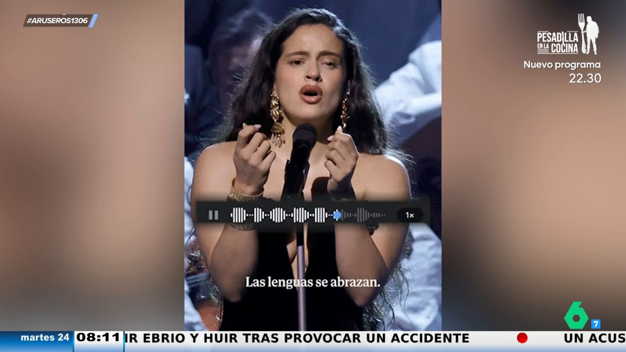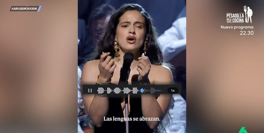 Rosalía ha compartido un adelanto de su nueva canción a través de un audio de Whatsapp. "Vamos a escucharlo porque lo hace a capela", afirma Tatiana Arús, que muestra el audio viral en el vídeo principal de esta noticia, donde afirma que la cantante lo compartió con todos sus seguidores.
