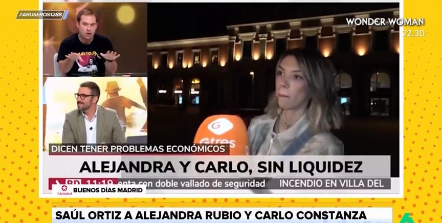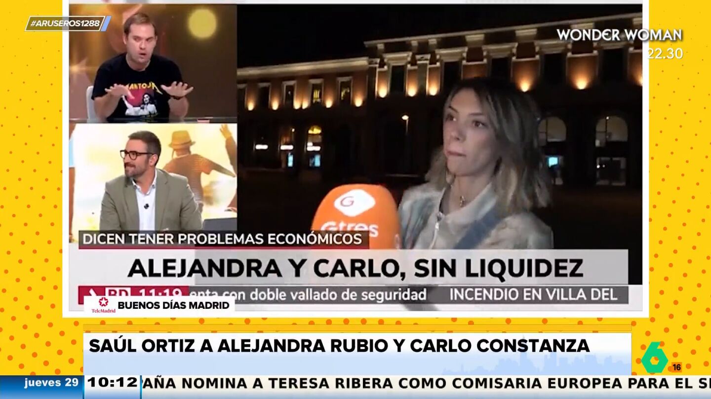 El periodista Saúl Ortiz estalla en pleno directo en Telemadrid tras las últimas declaraciones de Carlo Costanzia y Alejandra Rubio, que afirman tener "problemas económicos". "Llevan un verano de yate en yate y tiro porque me toca", se queja.
