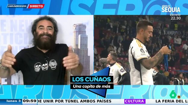 El Real Madrid es campeón de Europa y El Sevilla no ha dudado en felicitarlos antes de pasar a comentar la noticia que le propone Alfonso Arús. "Enhorabuena al madridismo, es para estar contentos. Ya no es una copa más, ya 15 copas son una borrachera". La noticia tiene que ver con que el Madrid es un equipo de cuñados porque Joselu y Carvajal lo son.