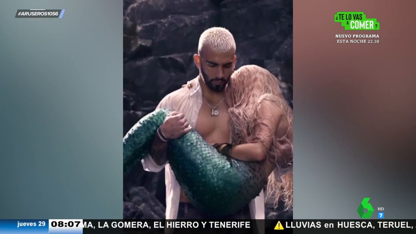 Y es que la artista colombiana aparece convertida en una sirena con el pelo rosa a la que Manuel Turizo saca del mar en brazos. Puedes ver las imágenes, compartidas por la propia Shakira, en el vídeo principal de esta noticia.