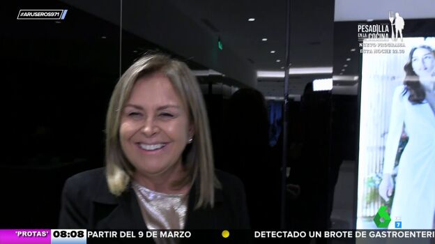 "Espero y se merecen los dos ser muy felices", responde. "Son dos amigos que se han unido y...", comenta el reportero, a lo que la diseñadora se encoge de hombros y sonríe. "Hasta aquí", dice entre risas, tal y como se muestra en este vídeo de Aruser@s.