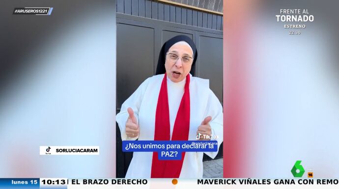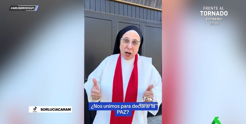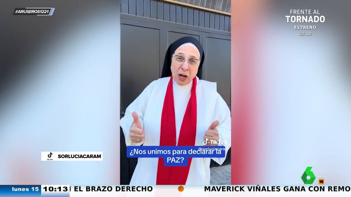 Sor Lucía "está guerrera", apunta David Broc justo después de escuchar el 'zasca' con el que vuelve a protagonizar esta ya mítica sección de Aruser@s. En esta ocasión, la mediática monja, muy al hilo de la escalada de violencia y las tensiones y conflictos que se están sucediendo a nivel internacional, tiene un mensaje que lanzarnos a todos y especialmente a los políticos.