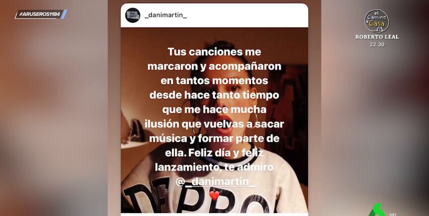 La actriz ha contestado de la siguiente forma a Dani Martín: "Tus canciones me marcaron y acompañaron en tantos momentos desde hace tanto tiempo que me hace mucha ilusión que vuelvas a sacar música y formar parte de ella. Feliz día y feliz lanzamiento. Te admiro". Una respuesta que no convence a los colaboradores de Aruser@s, que la analizan en plató: "Venga, hasta luego".