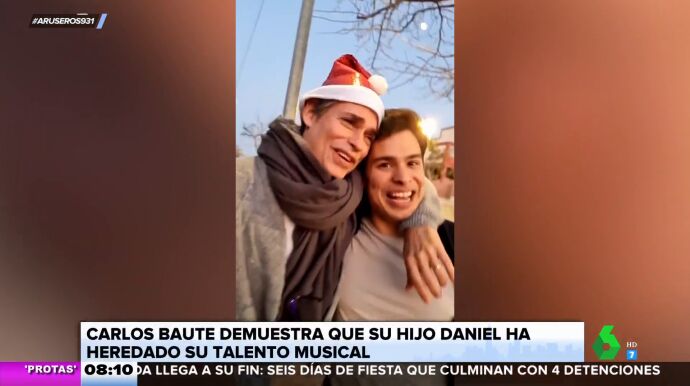 "Es indiscutible que guarda un gran parecido con José Daniel, pero lo que desconocíamos es que ha heredado el talento musical de su padre", afirma Tatiana Arús mientras da paso al vídeo en el que Carlos Baute canta junto a su hijo el éxito 'Colgando en tus manos'.