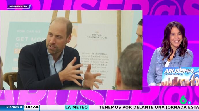 "Ponme la imagen del príncipe Guillermo con barba", pide Alfonso Arús en el plató de Aruser@s, donde Patricia Benítez le interrumpe afirmando los "guapo" que es. "¿Guapo?, no, ahí lo ves, le darías un euro si te lo encuentras en un cajero con un cartón en el suelo", destaca el presentador, que afirma que "tiene pinta de homeless".