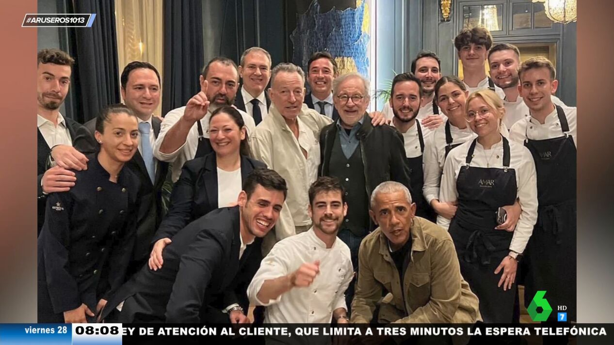 Springsteen, Obama y Spielberg: esta es la foto viral cenando de madrugada en un restaurante de Barcelona