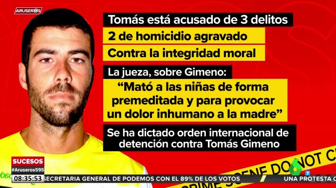 La Guardia Civil también se está centrando en la búsqueda del cuerpo de Tomás Gimeno, contra el cual se ha dictado una orden de búsqueda internacional y al que se acusa de tres delitos: dos de homicidio agravado y uno contra la integridad moral.
